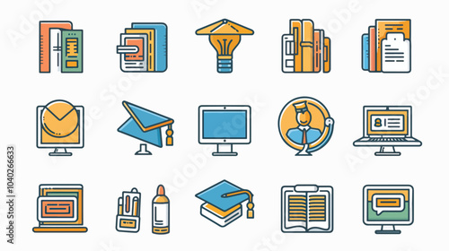 Online education icon set, icon set in line style, flat vector illustration, Mentorship