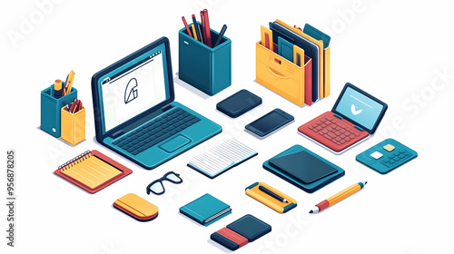 isolated, tool, vector, white background, study, technology, learning, student, laptop, e-learning, degree, higher education