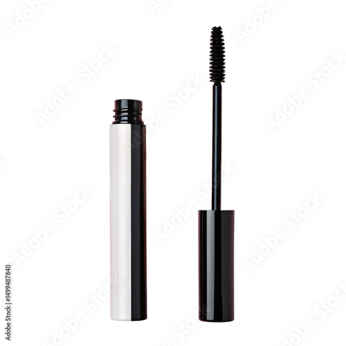 Open Black Mascara Tube with Wand Isolated on transparent Background