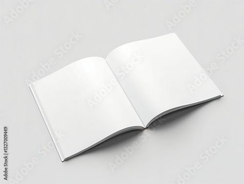 Open blank notebook lying on a light gray surface inviting writing and creativity for ideas and thoughts