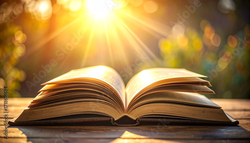 book, reading, sunlight, light, open book, sun, nature, sunshine, cognition, learning, education, peace, open, wood, surface, warm, radiant, calmness, page, library, novel, story, information, inspiration, exploration, imagination, nirvana, wisdom, understanding, explore, discover, immersed, reflect, contemplate, mulling, learn, study, read, literature, text, storybook, hardcover, paper, wooden, natural light, bright light