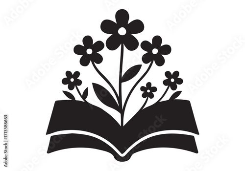 book, open, flower, blooming, growth, cognition, education, learning, literacy, reading, literature, story, wisdom, idea, inspiration, creativity, symbol, concept, icon, graphic, design, silhouette, black, and, white, art, visual, symbolism, metaphor, development, progress, new, potential, nature, life, renewal, spring, floral, botanical, garden, plant, stem, leaf, simple, clean, minimalist, modern