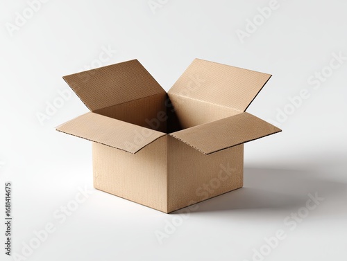 box, cardboard, open, empty, shipping, package, delivery, brown, corrugated, square, retail, product, container, commerce, logistic, transportation, gift, cardboard box, blank, interior, light, shadow, studio, neutral, simple, clean, modern, unmarked, freight, cargo, mailer, paper, good, packing, store, supply