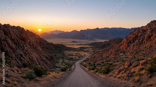 desert, road, dirt, landscape, sunlight, rock, sky, nature, travel, empty, scenic, path, wilderness, arid, horizon, scenery, adventure, journey, exploration, terrain, sun, blue, cloudless, highway, remote, desolate, dust, wild, natural, environment, open, geology, topography, vacation, countryside, landform, rural, panorama, view, expanse, peaceful, tranquil, barren, outback, photo, vista, distance, freedom