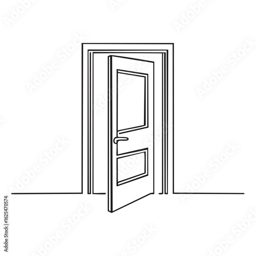 Open Doorway Outline Simple Black Lines Illustration on White Background