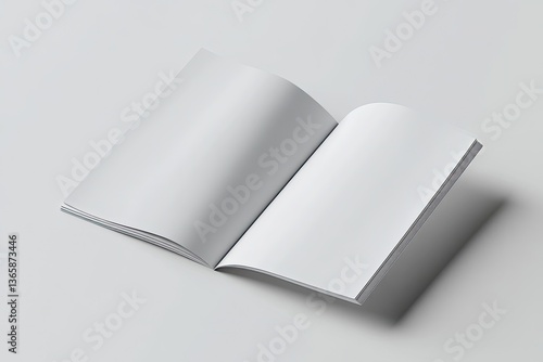 Open Magazine Blank White Pages on White Background Minimalist Style Design