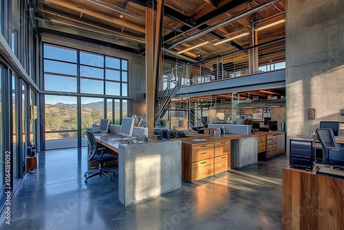 open, office, space, concrete, desk, wooden, cabinet, modern, design, glasses, commercial, company, contemporary, corporate, desk, efficient, floor, furniture, goggles, layout, lighting, minimalist, professional, render, sleek, stylish, three-dimensional, window, cabinet, chair, interior, productivity, work, workspace, business, ceiling, empty, functional, illustration, area, bright, clean, equipment, wall, architecture, environment, natural