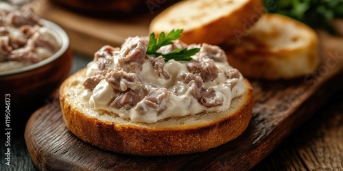 sandwich, creamy, toasted, english, muffin, parsley, rustic, wooden, board, food, cookery, garnish, meal, breakfast, brunch, snack, presentation, culinary, ingredient, dish, homemade, epicure, loaf, half, dairy, texture, fresh, serving, platter, delicious, tasty, simplicity, dining, indulgence, savoury, bread, comfort, handcraft, sharing, eatery, culinary arts, gourmet food, wholesome