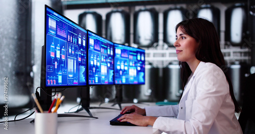 alcohol, monitor, monitor, production, woman, woman, factory, using, girl, control, helmet, wine, maintenance, construction, smart, software, screen, drink, learning, storage, industry, tank, equipment, lady, industrial, container, young, stainless, winery, female, steel, metal, caucasian, barrel, fermentation