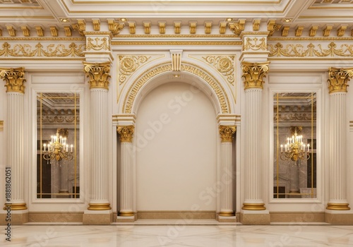 opulent, symmetric, architecture, interior, ornate, decorative, grand, arch, classical, detailed, marble, lighting, formally, grandiose, formal, architectural, gold