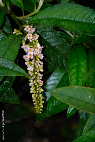 Orange and white butterfly bush in the wild