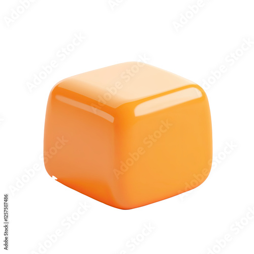 Orange cube, studio shot, white background, 3D render, graphic design element