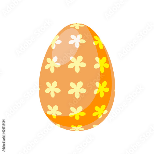 Orange egg with a floral pattern isolated on a white background. Easter Egg with painted plant ornaments and patterns. The Spring Festival. Vector Illustration. Easter Element Template
