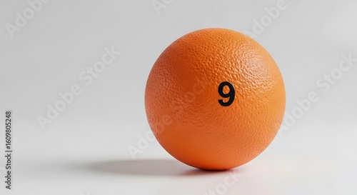 orange, egg, number, 9, 9, numeral, counting, digit, isolated, white, background, studio, shot, minimalist, simple, food, fruit, citrous, round, oval, object, single, 1, symbol, mark, painted, textured, bright, vibrant, clean, modern, creative, concept, photo, still, life