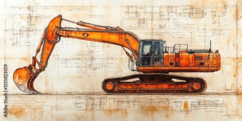 shoveling, construction, machinery, orange, blueprint, design, vehicle, drawing, engineering, technical, track, bucket, metal, industrial, equipment, plan, heavy, machine, illustration, diagram, building, project, technology, architecture, system, schematic, detail, structure, paper, vintage, line, mechanical, vignetting, industry, art, artwork, textured, rusted, retro, grid, detailed, transportation, draft, aged, antique, pattern