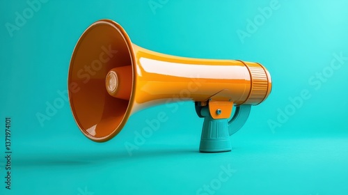 Orange Megaphone on Turquoise Background for Call to Action