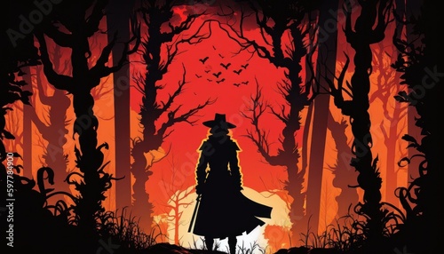 Orange silhouette of the man in the cape illustration. Generative AI