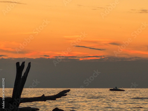 Orange sunset on Lake Michigan, Holland State Park beach