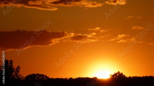 Orange sunset on the cloudy sky