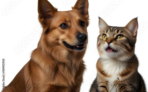 Orange Tabby Cat and Golden Retriever Dog Isolated on Transparent Background