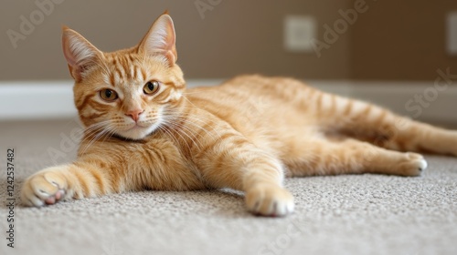 orange, tabby, cat, lying, floor, stretched, leg, pet, animal, domestic, relaxed, cosy, comfort, home, felino, playful, soft, fur, adorable, stretch, lazy, posture, sunlight, spot, warmth, resting, scene, interior, calmness, cute, companionship, visual, high-coloured, cheerful, snapshot, nature, indoor, well-being, leisure, daydream, sunbeam, elegant, peaceful, fall, sleep, charme, serene, expression, rest