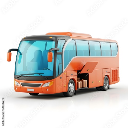 bus, vehicle, transportation, orange, baggage, compartment, travel, open, suitcase, tour tourism, coach, automotive, road trip, public transport, journey, destination, modern, style, design, illustration, white, rendering, nobody, clean, bright, automobile, wheeled, adventure, holiday, vacation, business, traveling, trip
