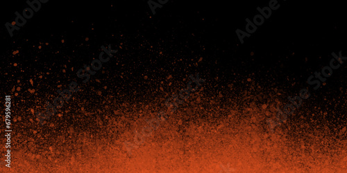 Orange watercolor ombre leaks and splashes texture on dark watercolor paper background with scratches. Abstract orange powder splattered background, Freeze motion of color powder exploding/throwing.