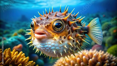 Orbicular Burrfish (Ciclychthys orbicularis) Underwater Close-up Stock Photo