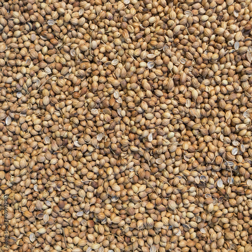 Organic Dried coriander seeds Coriandrum sativum close-up background