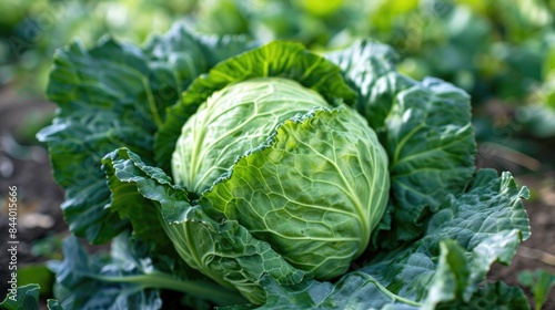 Organic green cabbage in a garden up close