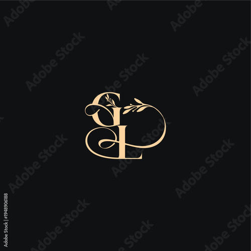 organic leaves wedding logo monogram elegant concept letter luxury feel with wavy line GL