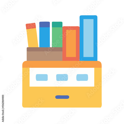 desk, drawer, organisation, book, supply, colourful, flat, design, office, study, education, learning, stationery, pen, container, storage, management, neat, arrangement, workspace, document, paperwork, file, open, box, rectangle, geometric, modern, contemporary, minimal, icon, pictogram, illustration, graphic, simple, organised, colours, pattern, row, blue, yellow, green, orange