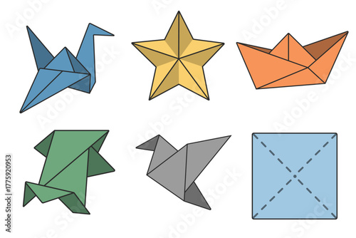 Origami Clipart Set – Paper Crane, Star, Boat, Frog, Bird, Folded Shapes