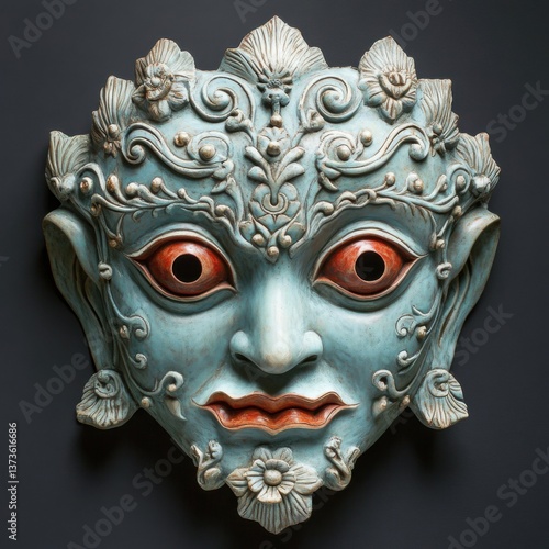 Ornate Decorative Mask with Intricate Floral Patterns and Expressions