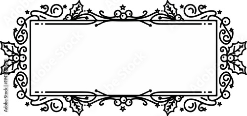 ornate, festive, frame, holly, berry, swirling, decorative, element, border, holiday, celebration, christmas, new, year, invitation, announcement, greeting, card, design, template, vintage, antique, retro, floral, leaf, branch, star, circle, ornamental, graphic, illustration, black, white, outline, simple, clean, elegant, sophisticated, detailed, traditional, seasonal, winter, nature, plant, foliage, adornment, vignette