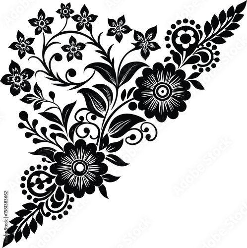 ornate, floral, lace, corner, silhouette, small, flower, design, art, nature, decoration, bloom, beauty, aesthetic, vector, illustration, hand-made, drawing, vignetting, creative, spring, summer, garden, blossom, arrangement, decorative, ornamental, plant, foliage, tree branch, flourish, elegant, chic, stylish, pretty, delicate, soft, fresh, colourful, leaf, green, artistic, detailed, intricate