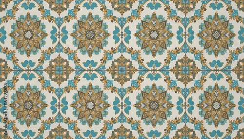 Ornate Teal and Gold Tile Pattern Background