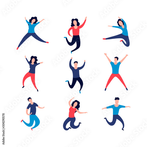 happy, jump, active, woman, vector, fun, girl, success, person, young, boy, joy, happiness, action, excited, winner, holiday, modern, man, cartoon, illustration, up, group, cheerful, background, silhouette, concept, life, design, sport, education, clip art, character, music, trendy, drawing, dance, stile, crazy, adult, male, activity, isolated, icon, teenage, flat, copy