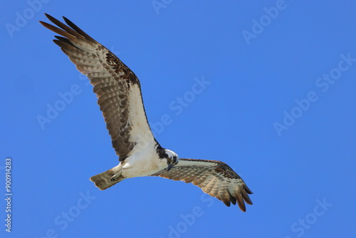 Osprey inflight against blue sky