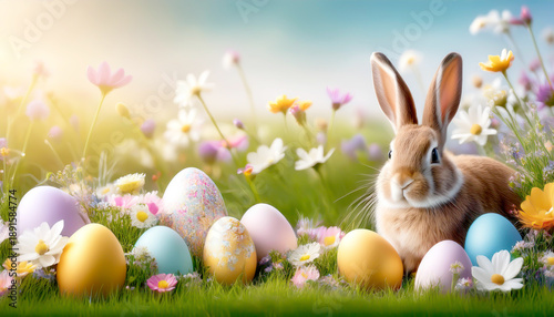 easter bunny, rabbit, easter egg, easter egg, spring, tulip, meadow, cute, fluffy, pastel, colourful, easter, holiday, tradition, nature, garden, country house, bungalow, background, bokeh, sunlight, warm, merry, playful, family, children, greeting card, invitation, countryside, romantic, idylli, animal, rabbit, symbol, copy space