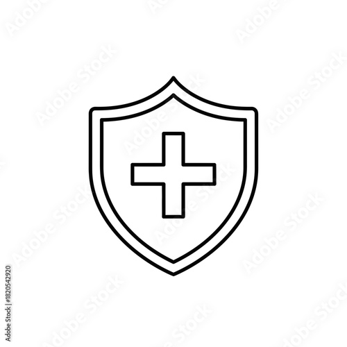 Outline icon of a shield with a medical cross inside, symbolizing health protection and safety, vector illustration