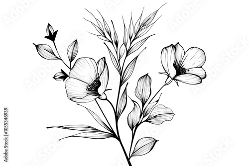 Outline tattoo illustration of flowers. Isolated hand drawn floral prints.