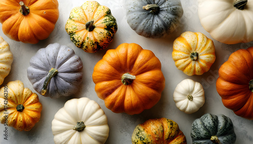 pumpkin, overhead, top, view, autumn, fall, harvest, orange, vegetable, food, seasonal, farm, agriculture, background, arrangement, group, multiple, fresh, organic, natural, healthy, ingredient, cooking, culinary, halloween, thanksgiving, rustic, rural, country, closeup, pattern, texture, stem, round, squash, produce, market, raw, ripe, bright, colourful, flat, lay