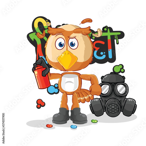 owl graffiti artist vector. cartoon character