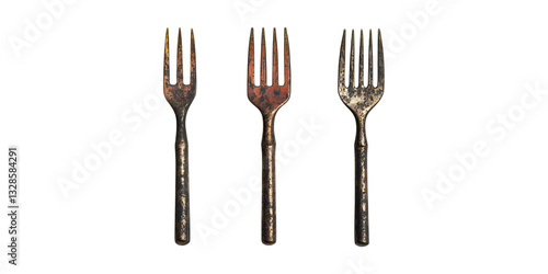 Pack Gardening Fork Set in Different Poses Against Transparent Background for Farming, Horticulture, or Tool Branding