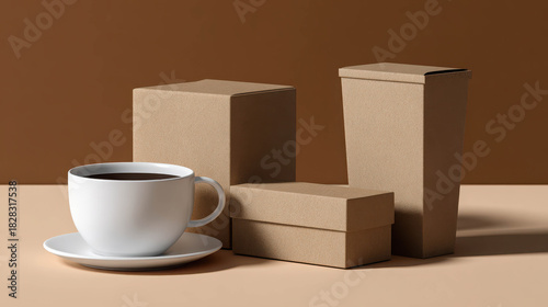 Packaging Design on Recycled Paper with Coffee Cup and Brown Background for Eco-Friendly Product Presentation and Advertising
