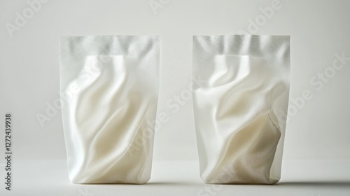 Pair of Abstract White Textured Wave Forms on a Light Gray Background