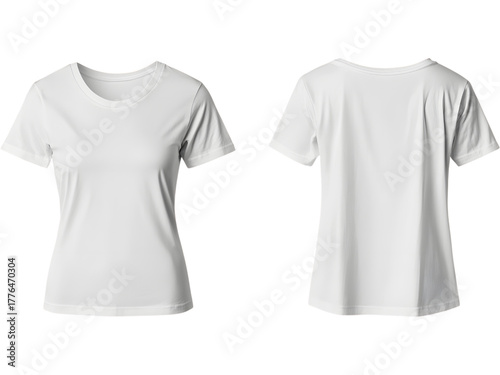 Pair of plain white t-shirts front and back view isolated on transparent background, ideal for branding