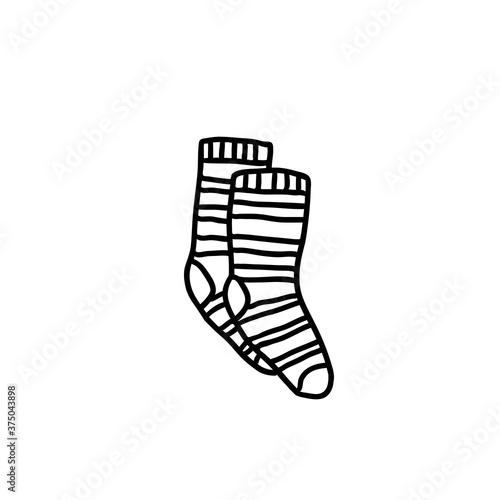 sock, wool, vector, icon, hand-drawn, background, black, bold, cartoon, clothes, clothing, cosy, cute, design, doodle, drawing, drawn, graphic, hand, illustration, isolated, line, outline, pair, stripes, white