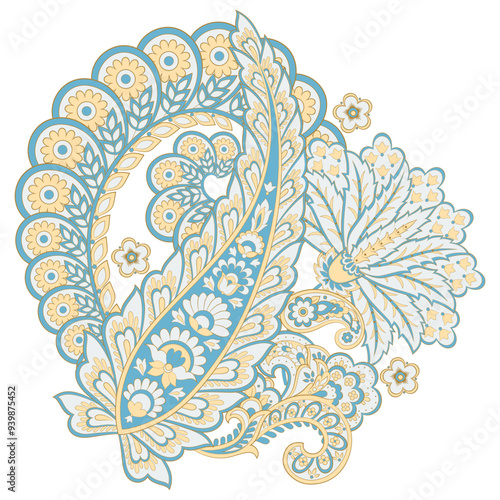 Paisley vector pattern. Isolated Fantastic flower, leaves